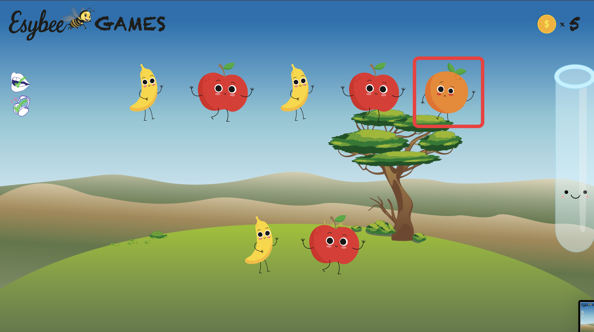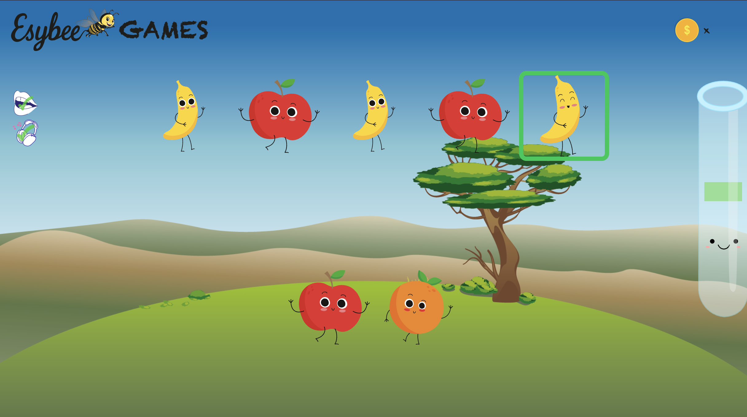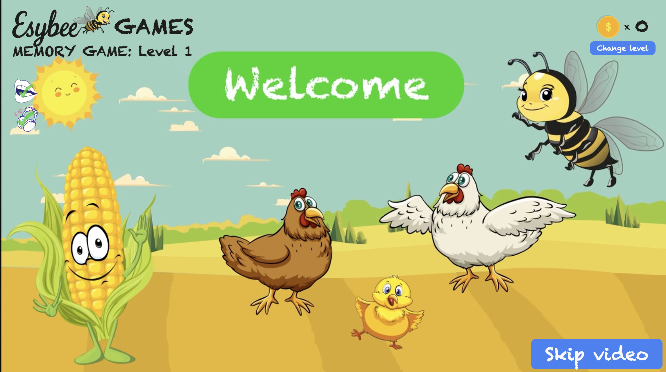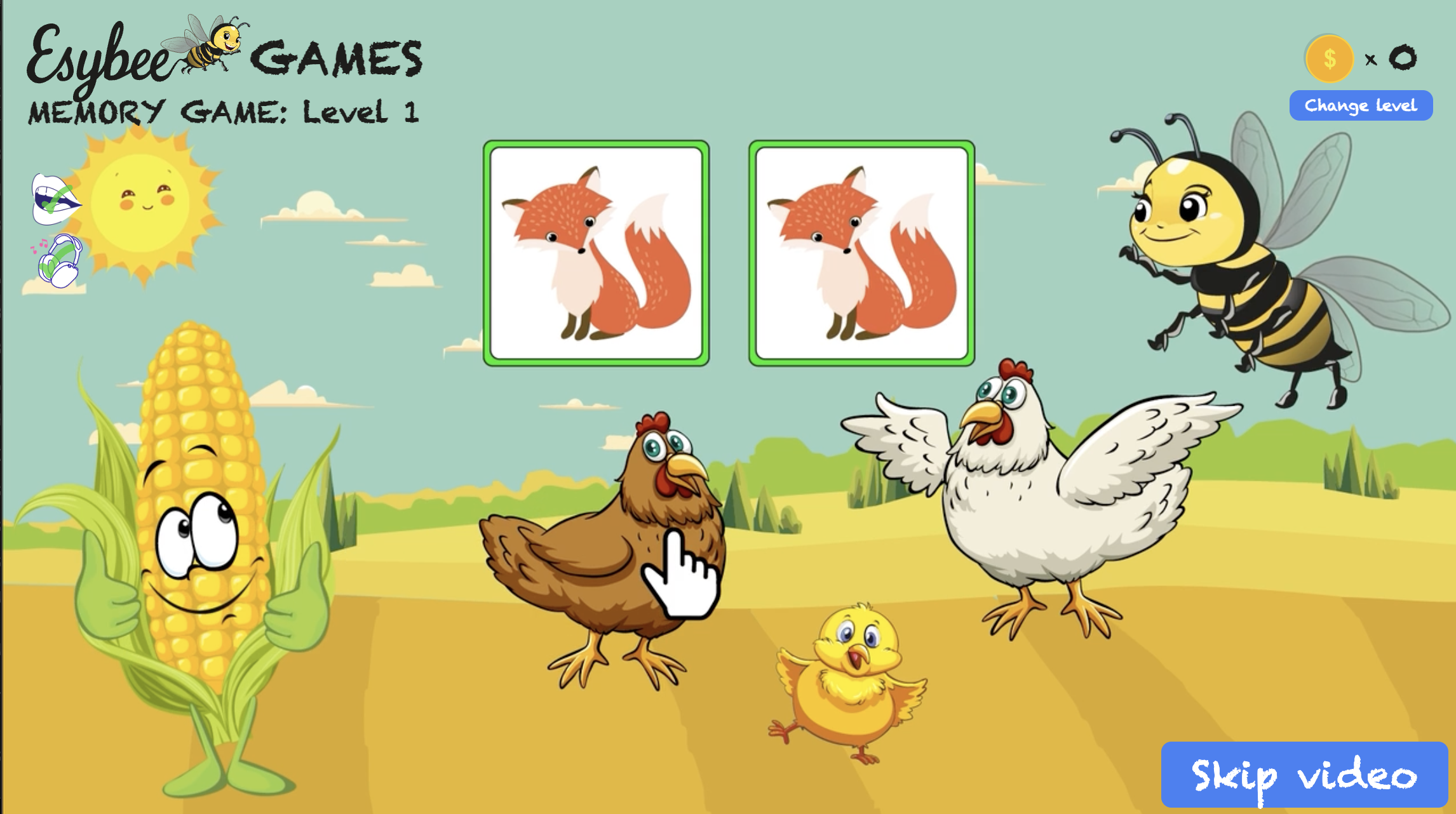 Interactive memory game for children in preschool created with React Typescript and Tailwind CSS with introduction video created with Adobe Premier, Adobe After Effects and Adobe Illustrator. The user has to click on the figures on the screen and a card will appear, then find the figure that has the matching card. There can be 2-5 matching cards depending on the level. The cards are randomly generated. A animation of a character appears if there are more than 2 matching cards. A silo is filled to show how many cards the user has found. The user also collects coins for each level cleared.